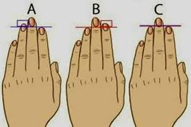 L'immagine mostra tre tipi di lunghezze delle dita, segnati con A, B e C.